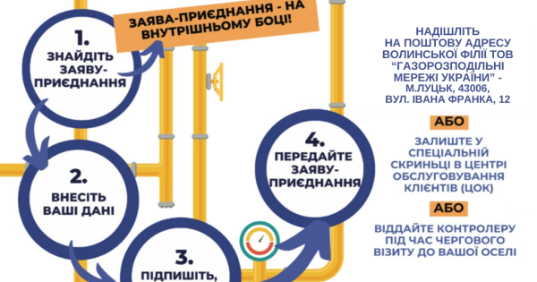 Нагадуємо, що договір розподілу газу є публічним, однаковим для всіх споживачів і не потребує двостороннього підписання. Отже, щоб приєднатися до договору вам достатньо заповнити Заяву-приєднання і передати її на адресу Волинська філії ТОВ «Газорозподільні мережі України».