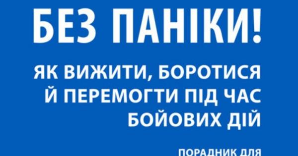 У посібнику «Без паніки! Як вижити, боротися й перемогти під час бойових дій» зібрано інформацію, що допоможе пересічним громадянам вижити, боротися й перемогти у складних умовах бойових дій; викладено елементарні поради, як успішно протистояти лихові. І найголовніша з них — не панікувати за жодних обставин!