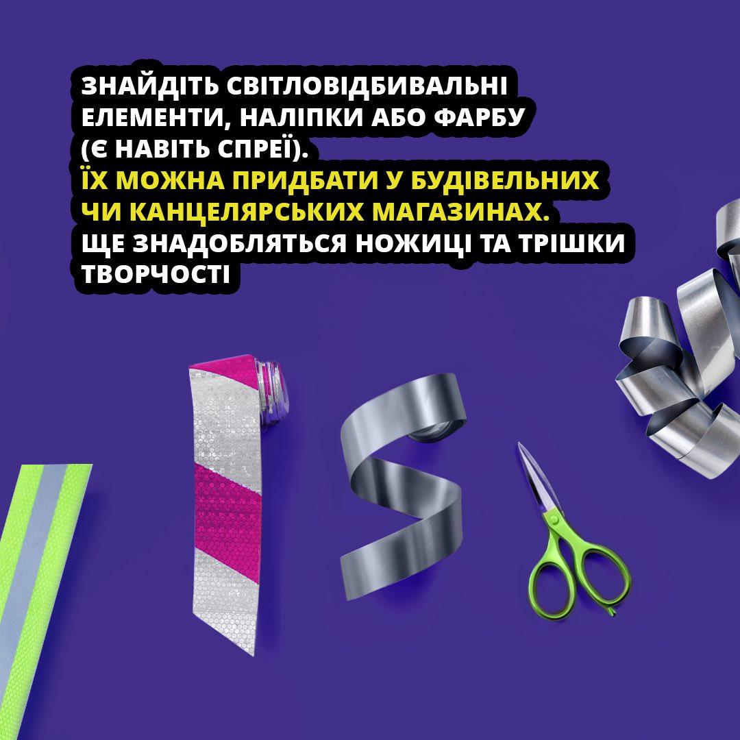 Щоб заохотити дорослих і дітей частіше користуватися такими елементами, Державна служба України з надзвичайних ситуацій підготували яскраву інфографіку з покроковими інструкціями, як створити стильні світловідбивні флікери власноруч. У ній зібрані прості ідеї, які можна реалізувати вдома, використовуючи доступні матеріали — стрічки, наклейки, фетр, світловідбивну фарбу чи навіть канцелярські дрібниці.
