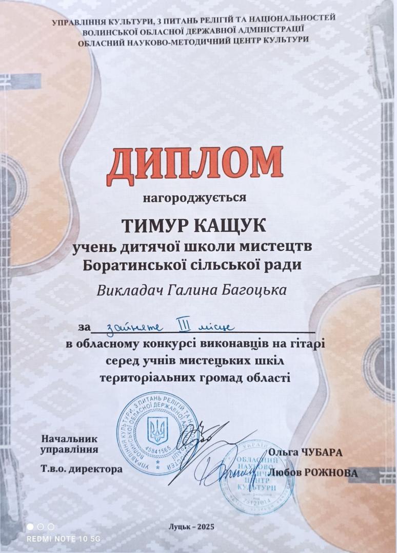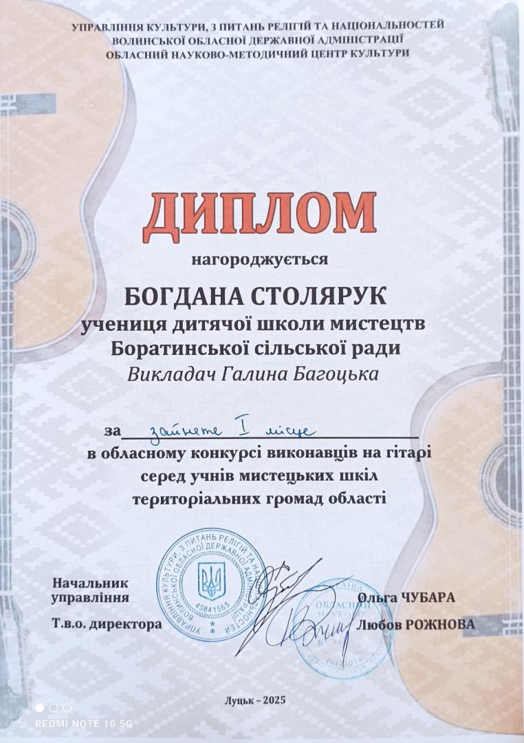 Дитячу школу мистецтв Боратинської сільської ради представляли двоє учнів, які продемонстрували чудові результати: