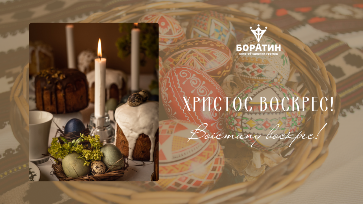 Нехай світле свято Христового Воскресіння принесе у кожну родину спокій та віру в краще майбутнє. Бажаємо вам Божої благодаті, міцного здоров’я та мирного життя під українським небом, яке мужньо захищають наші воїни.