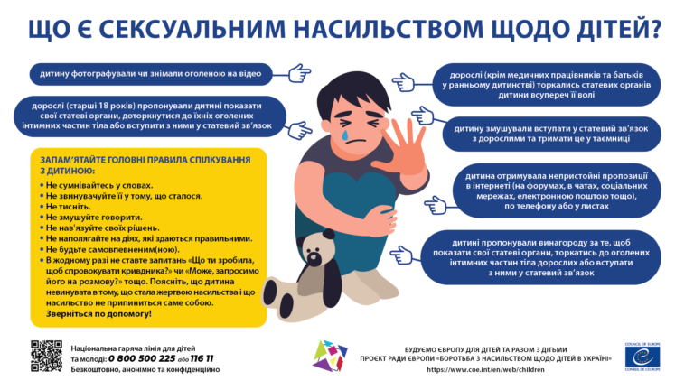 • 116-111 (з мобільного) або 0-800-500-225 (зі стаціонарного) – національна гаряча лінія для дітей та молоді;