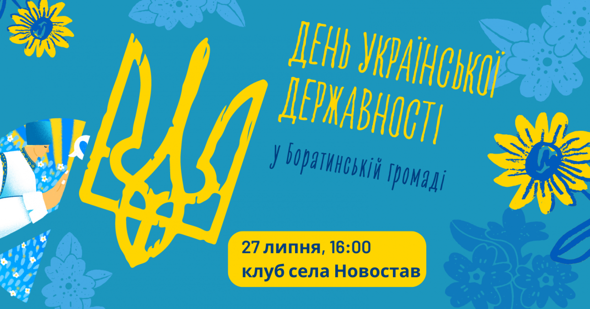 Чекаємо усіх 27 липня о 16:00 у клубі села Новостав (с. Боратин, вул. Центральна, 105).