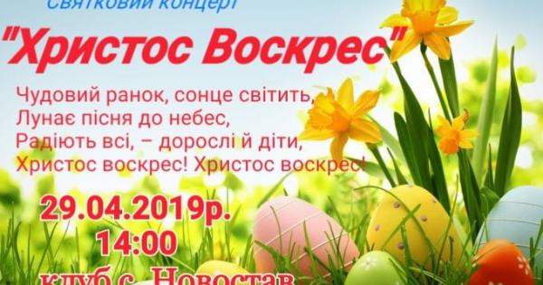 29 квітня у клубі села Новостав відбудеться святкове дійство «Христос Воскрес». Початок заходу о 14.00. Запрошуємо усіх охочих долучитися до українських традицій святкування Великодня.