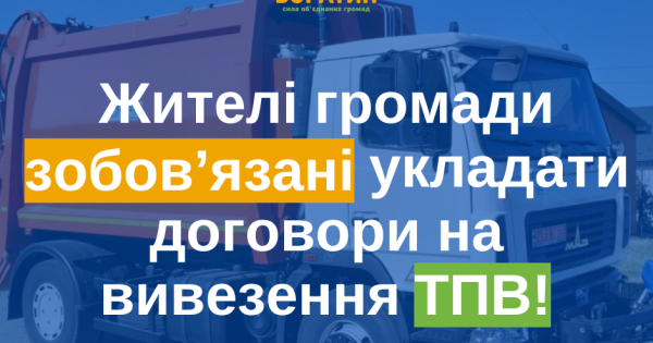 КП «Боратин» наголошує, що укладання договорів на вивезення ТПВ є обов’язковим!