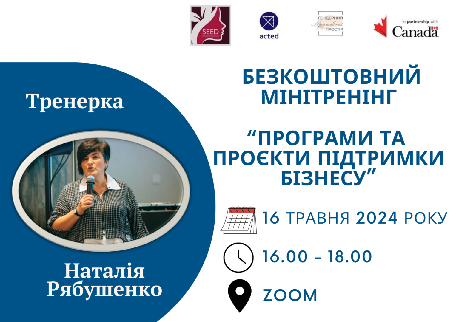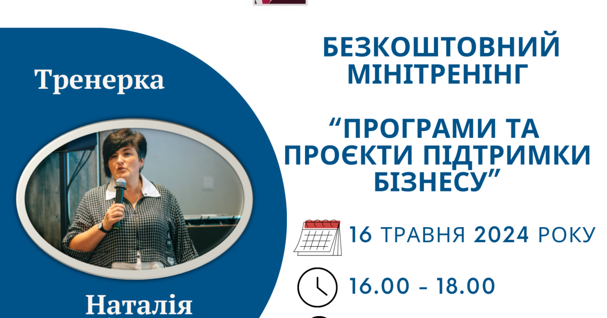 Грантові програми та проєкти – це чудова можливість залучити фінансування для розвитку чи початку своєї справи. У межах безкоштовного онлайн мінітренінгу «Програми та проєкти підтримки бізнесу» тренерка Наталія Рябушенко розповість детально про всі тонкощі цієї сфери. Цей захід корисний не тільки для представниць та представників малого бізнесу в Україні, але і для тих, хто лише прагне реалізувати себе у сфері підприємництва.