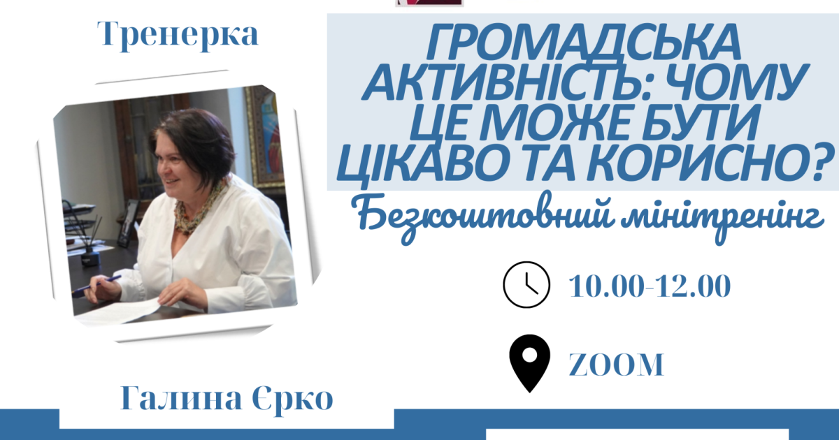 Як покращити свої лідерські якості та бути активними зможете розібратись у межах безкоштовного онлайн мінітренінгу «Громадська активність: чому це може бути цікаво та корисно?».