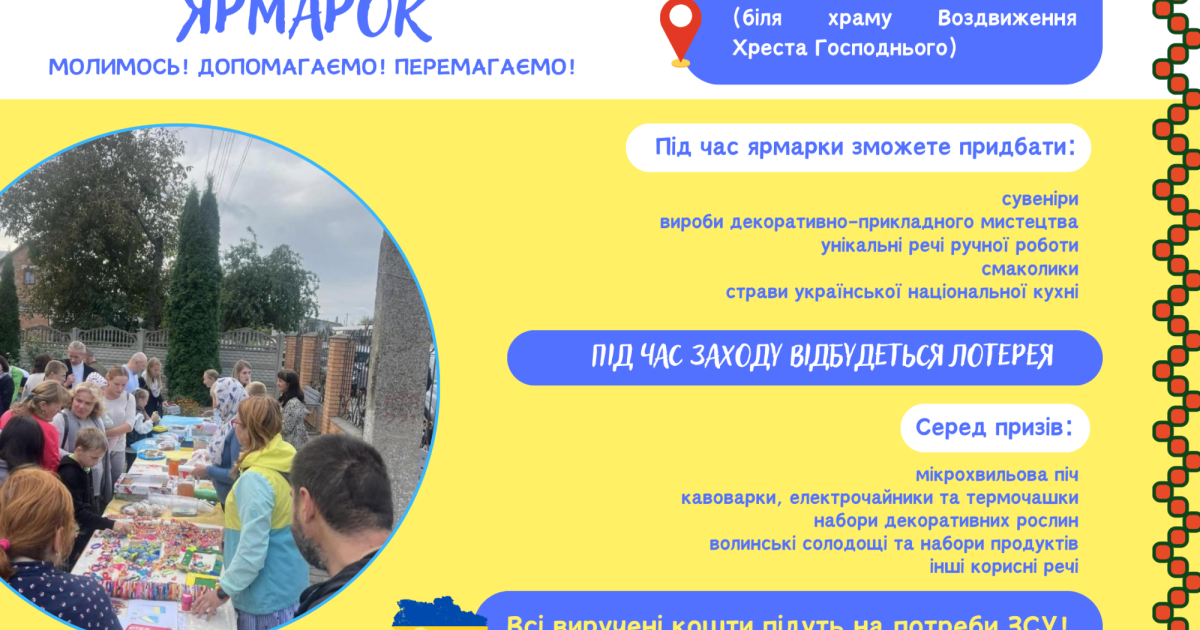 Ярмарок триватиме з 09:00 до 14:00 за адресою: с. Боратин, вул. Шкільна, 53 (біля храму Воздвиження Хреста Господнього).