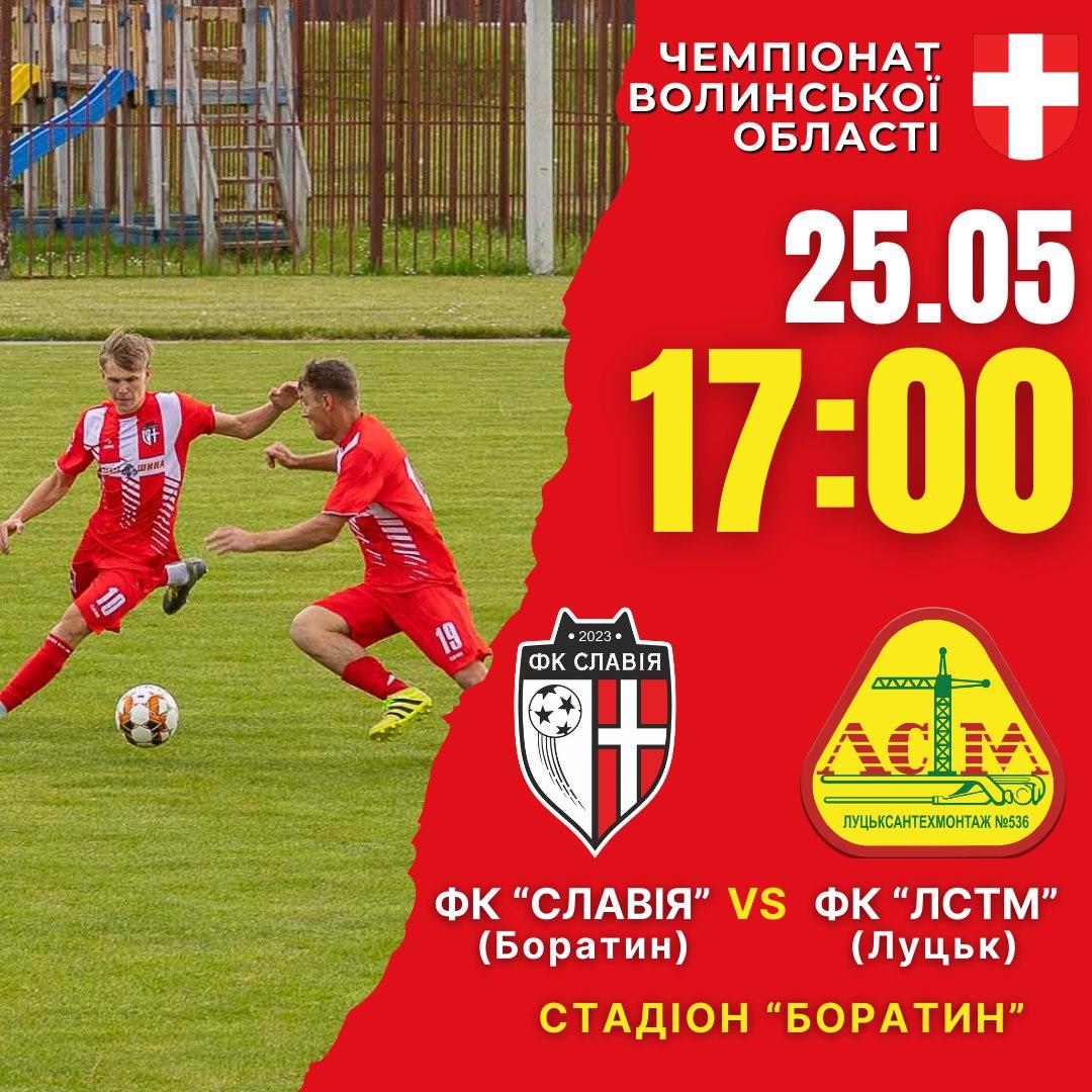 Наступна гра нашої команди відбудеться в суботу, 25 травня, о 17:00 на центральному стадіоні села Боратин. Суперником «СЛАВІЇ» стане неодноразовий чемпіон області ФК «ЛСТМ» (м. Луцьк).