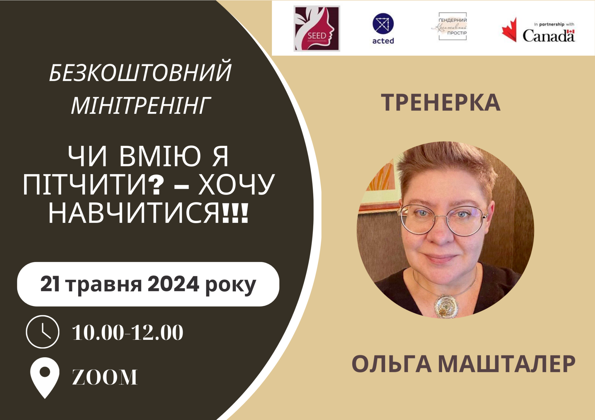 Мінітренінг проходитиме у межах проєкту «Я мрію, я можу, я роблю!», який реалізовується ГО «Ґендерний креативний простір» у рамках проєкту «Забезпечення розширення економічних прав та можливостей жінок для відновлення і розвитку», що фінансується Міністерством міжнародних справ Канади за підтримки Acted Україна.