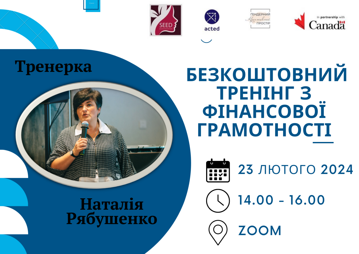 Розпочинається цикл онлайн міні-тренінгів з фінансової грамотності у межах проєкту «Я мрію, я можу, я роблю!», який реалізовується ГО «Ґендерний креативний простір» у рамках проєкту «Забезпечення розширення економічних прав та можливостей жінок для відновлення і розвитку», що фінансується Міністерством міжнародних справ Канади за підтримки Acted Україна.