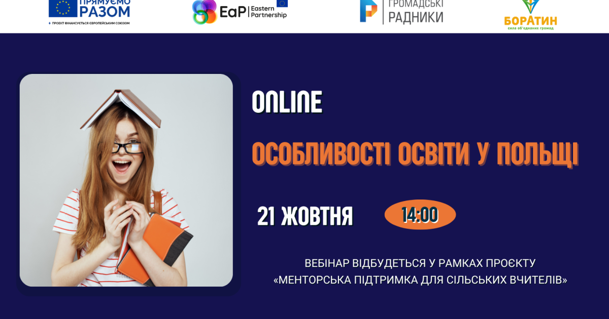 Вебінар відбудеться у рамках проєкту «Менторська підтримка для сільських вчителів», який впроваджується за підтримки Європейського Союзу в рамках Стипендіальної програми для лідерів громадянського суспільства країн Східного партнерства («Eastern Partnership Civil Society Fellowship»).