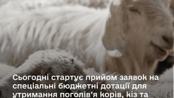 Відсьогодні розпочинається прийом заявок через Державний аграрний реєстр на спеціальні бюджетні дотації для утримання поголів'я корів, кіз та/або овець.
