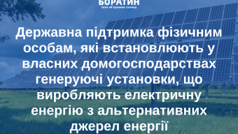 Державна підтримка фізичним особам, які встановлюють у власних домогосподарствах генеруючі установки, що виробляють електричну енергію з альтернативних джерел енергії