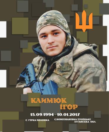 Хоча якраз у ті хвилини ворог нещадно «крив» українські позиції, проте бійці не залишили тіла побратима. Півтора кілометра, пригинаючись, щоб уникнути куль та мін, вони бігли й на ношах несли тіло солдата. Як потім розказали Аллі Климюк хлопці з 24-ої бригади, під час вибуху Ігор накрив заступника командира свого взводу і ціною власного життя врятував побратима. Тіло загиблого солдата привезли на Волинь 13 січня 2017-го, якраз тоді, коли всі родини збиралися за святковим столом.